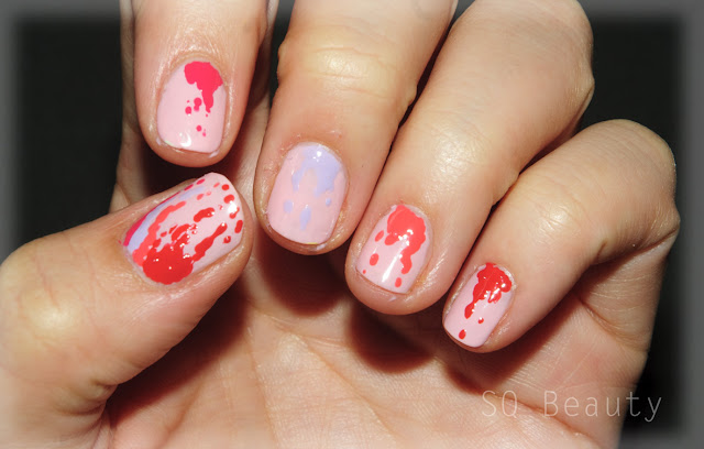 Con el mismo pincel de cada laca añado un toque de laca en la base de la uña y voy bajando dejando tocar la uña de vez en cuando para crear este efecto de goteo.